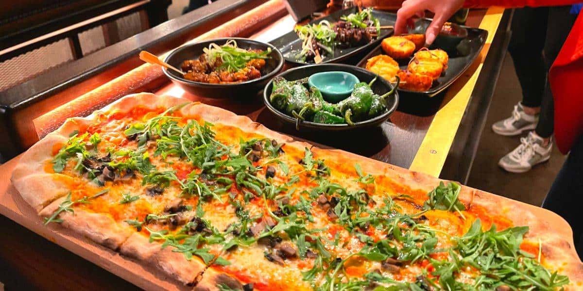 The food was mostly served as nibbles - skewers and bite size snacks were the order of the day. Vegan, vegetarian, and gluten-free diets were all well catered, the padron pan-roasted peppers with smoked rock salt were so incredibly more-ish and the stone baked pizza bases were spot on. Everything arrived on sharing paddles and plates, but the vegan items were clearly marked and were separated to avoid cross-contamination, so I was happy