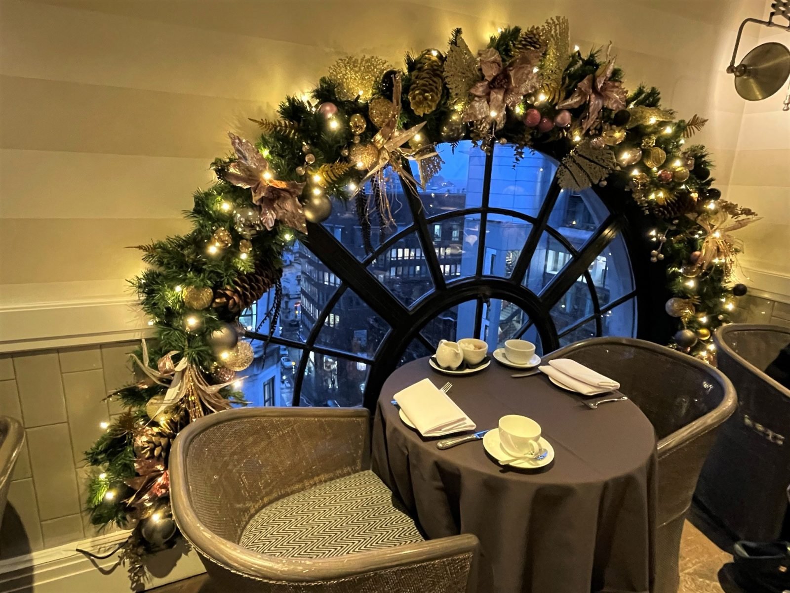 We were seated along a table in the centre of the restaurant where we could take in all of our surroundings, including the tasteful yet lavish Christmas decorations that adorned the arches of the half-moon windows. Even though we weren’t sat by one of the windows it was still a real treat being able to see some great views out of them. A perfect setting for a festive afternoon tea in Manchester!