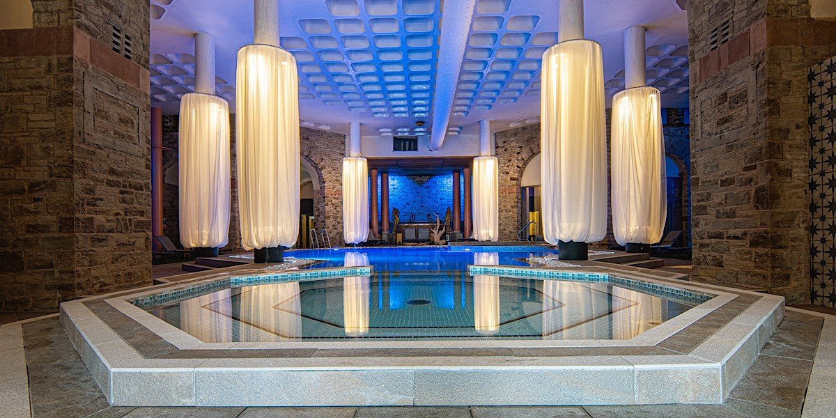 With its unique home inside a restored former chapel, the Eastern inspired BAZAAR Spa at the Shrigley Hall Hotel near Macclesfield includes the Silk Garden featuring an impressive outdoor heated infinity pool with spectacular countryside views. Indoors the sumptuous décor sets the mood; creating a relaxing space to relax and unwind.