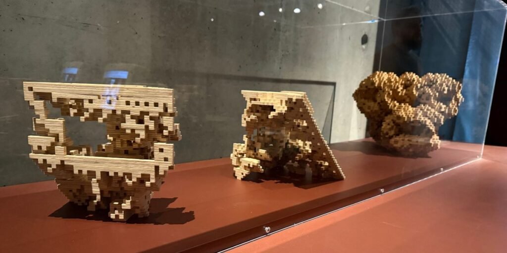 Everything here is very hands-on – at one point I was encouraged to take off my shoes and stand on one of the exhibits! A work by Alexandra Kehayoglou in the exhibition Garden Futures – ‘Meadow’, a huge carpet inviting us to consider the role that nature plays in our lives, and the simple pleasures of wriggling our toes in the grass.