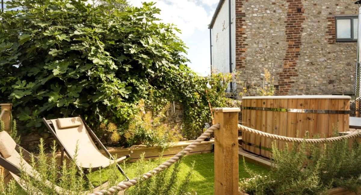 Check into this super-cute one-bedroom bolthole in the heart of Dorset and relax. The cherry on the top of this superbly renovated garden apartment in the centre of Lyme Regis is the beautiful brand-new wood-fired Scandinavian-style private hot tub, which sits in the pretty little suntrap of a garden bursting with blooms, with gorgeous views out to sea.