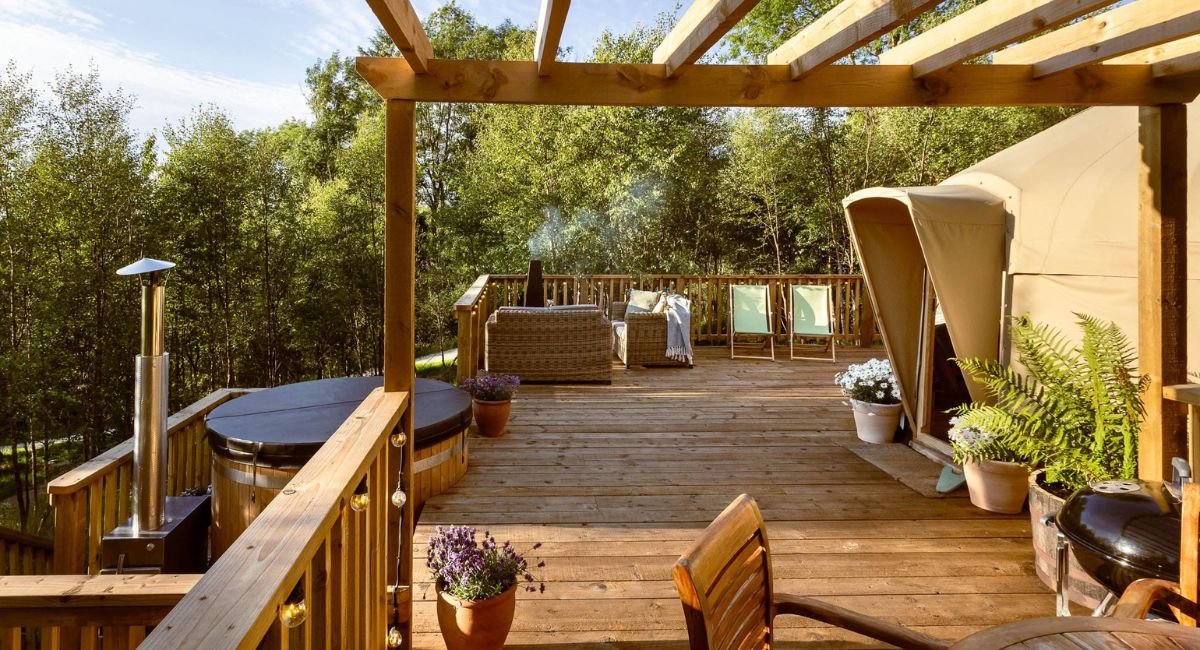 I love it because… it’s about as luxuriously cosy as a night under canvas gets. Expect bathrobes, TV, roaring fire, scatter cushions galore, plants, lamps, designer bathroom, kitchen sink - the lot! And of course not forgetting your own private wood fired hot tub.