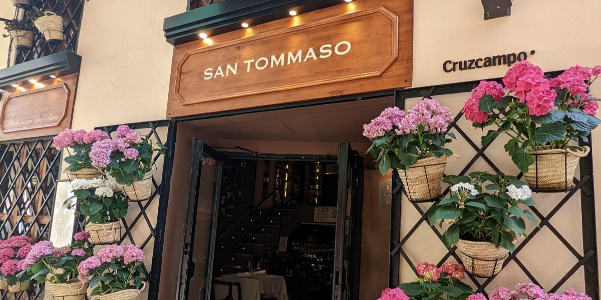 San Tommaso - a beautiful Italian restaurant adorned with hydrangea. The pizzas are huge so you could share and they had a couple of highchairs which wasn’t that common.
