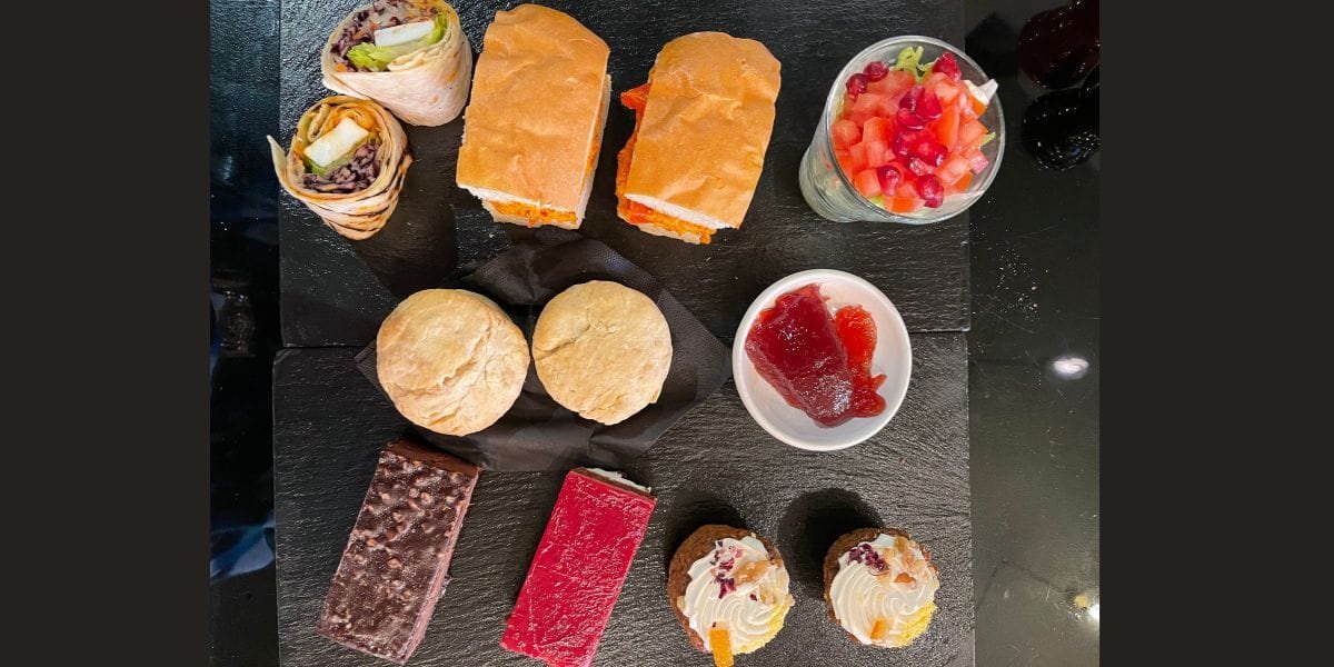 The vegan Mal Afternoon Tea options included black bean sliders, a super-cute caprese salad, Thai sticky tofu and sesame wrap, carrot and walnut cake, crunchy chocolate and nut cheesecake, raspberry and coconut slice and of course the essential scone & jam. Everything was beautifully presented and bursting with flavour - oh the joy of a hot scone, fresh out of the oven!