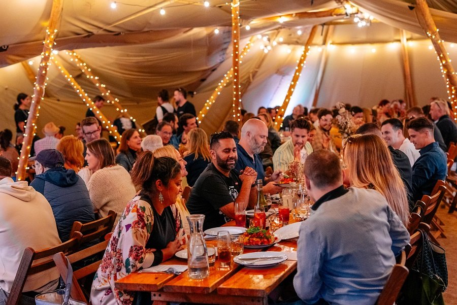 Diners will enjoy these delicious feasts at banqueting tables under At Home Farm’s giant atmospheric tipi hats with views overlooking the meadow. Each ticket includes a welcome drink, light taster nibbles and a three-course meal.