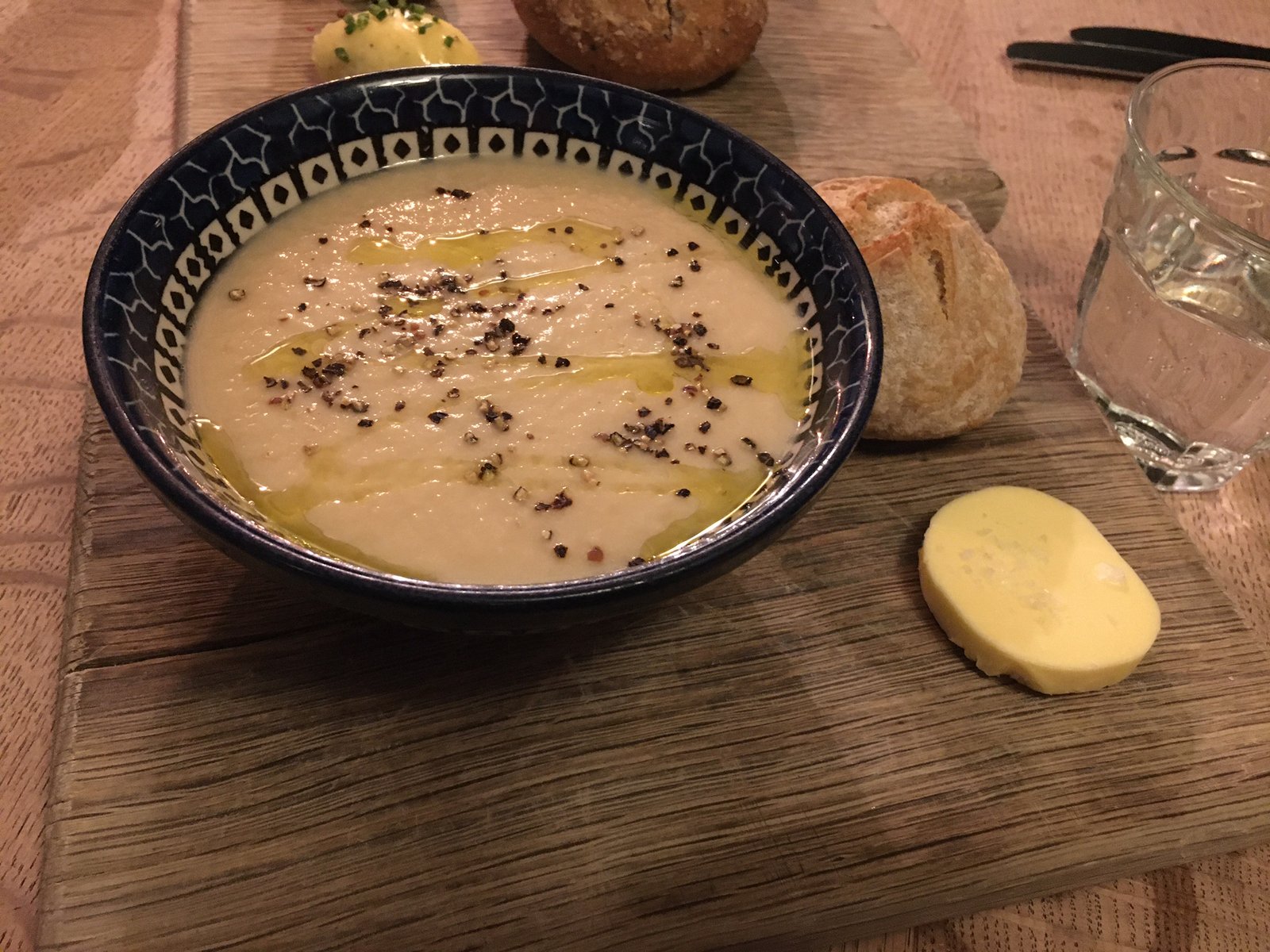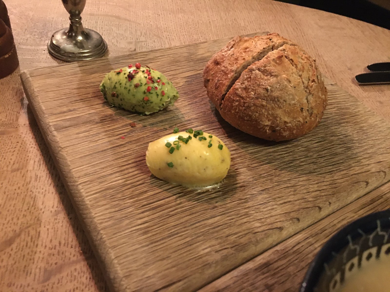 For dinner we started with the most moreish malted sourdough with house butters (two herby dollops so good they could be eaten on their own). Next followed cheddar beignets with aioli, cod skin scratchings (that didn’t perhaps look the most appealing, but nonetheless dipped in the whipped cod’s roe were delicious). We also greedily tried white onion soup and butted poached asparagus. Unable to resist, we then both opted for a 9oz Longhorn Ribeye steak, with Café de Paris herby butter, served with perfectly cooked chips.