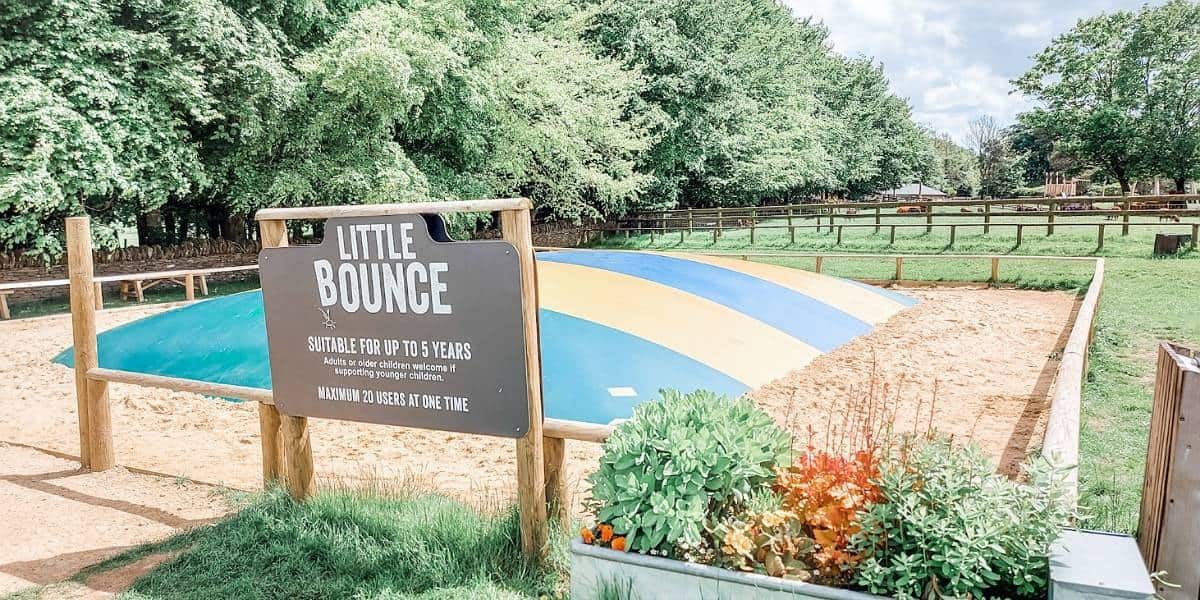 Next stop after the handwash was the bouncy pillow. Having had a good bounce we stopped for a drink and a snack on the picnic benches. This is when we noticed the woodland walk and conservation area.