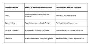 Allergy to dental implants symptoms vs. implant rejection