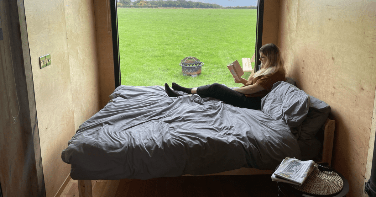 As we entered the cosy but surprisingly spacious cabin I was drawn to the large window overlooking the Canterbury countryside. This looked like the perfect spot to relax and enjoy my book, something I rarely have time for with the usual hubbub of life.
