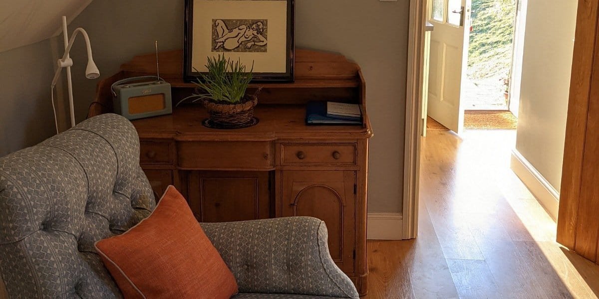 This is an Air BnB that sleeps two adults, and it’s also dog-friendly should you want to take your four-legged friends away with you. Caroline has done a clever job in using the furniture to create separate sleeping, working and living areas despite it being one large room. It has a real homely feel, with comfortable furniture and the decor is themed around the colours of the kingfisher - which you may spot as you explore the River Test!