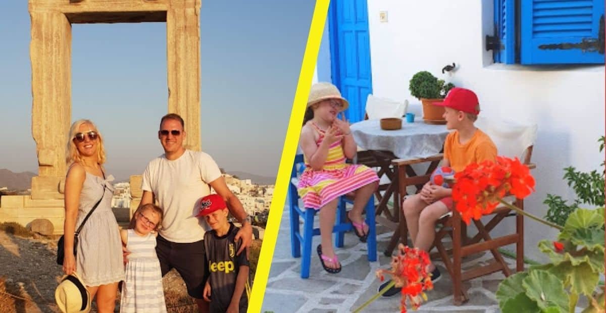 We were in The Greek Islands about to embark on our Greek Island hopping with kids adventure – a part of Greece associated with Mama Mia and Shirley Valentine, the Greece we were so desperate to see.