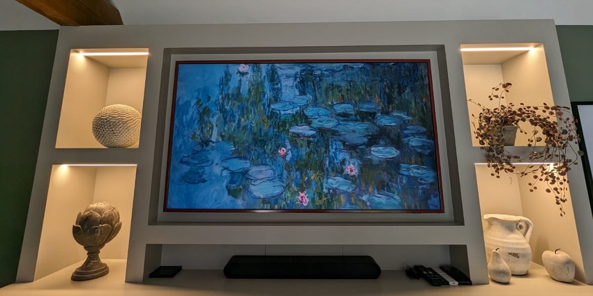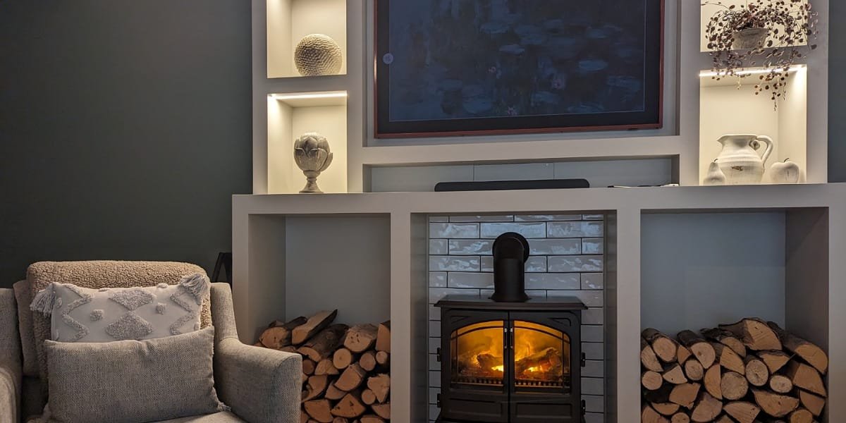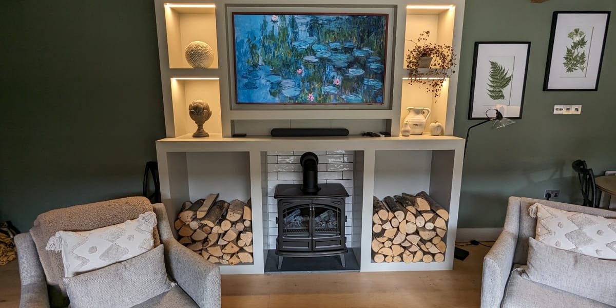 I received a welcome email before my stay, which provided really clear directions to this Hampshire holiday lodge. There’s private parking for 2 cars and the key was in a safe box which is great for those who prefer a self check in. Stepping into the open-plan living space was a bit of a wow moment. I was immediately drawn towards the media wall - the Samsung Frame TV set to the peaceful waterlilies of Monet, surrounded by stylish alcoves.