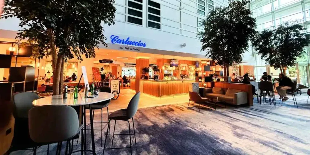 Guests looking for something more substantial can head to Carluccio’s, on the ground floor next to the lobby, and sit down to a relaxed meal. A proper start to the holiday with a glass of wine and some delicious food.