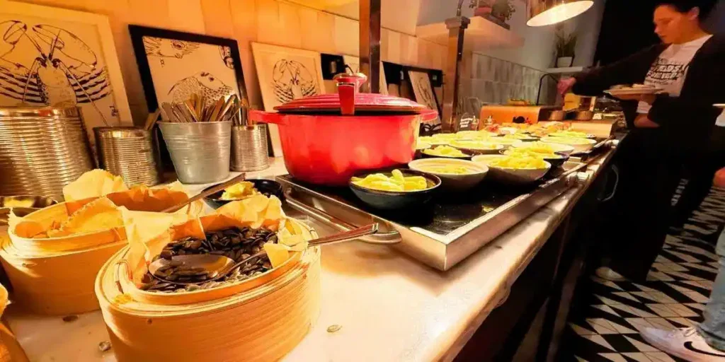 Rooms at club and executive level as well as suites include complimentary M Club Lounge access where guests can enjoy a selection of snacks and refreshments. Food and drinks are available throughout the day, on an ‘all you care to enjoy’ basis. We tucked into a selection of small plates such as hummus and crudités, spicy chicken and potatoes, breadcrumbed fish and even some delicious bite-size desserts alongside self-serve hot and cold drinks. For us it was the perfect way to refuel before retreating for an early night.