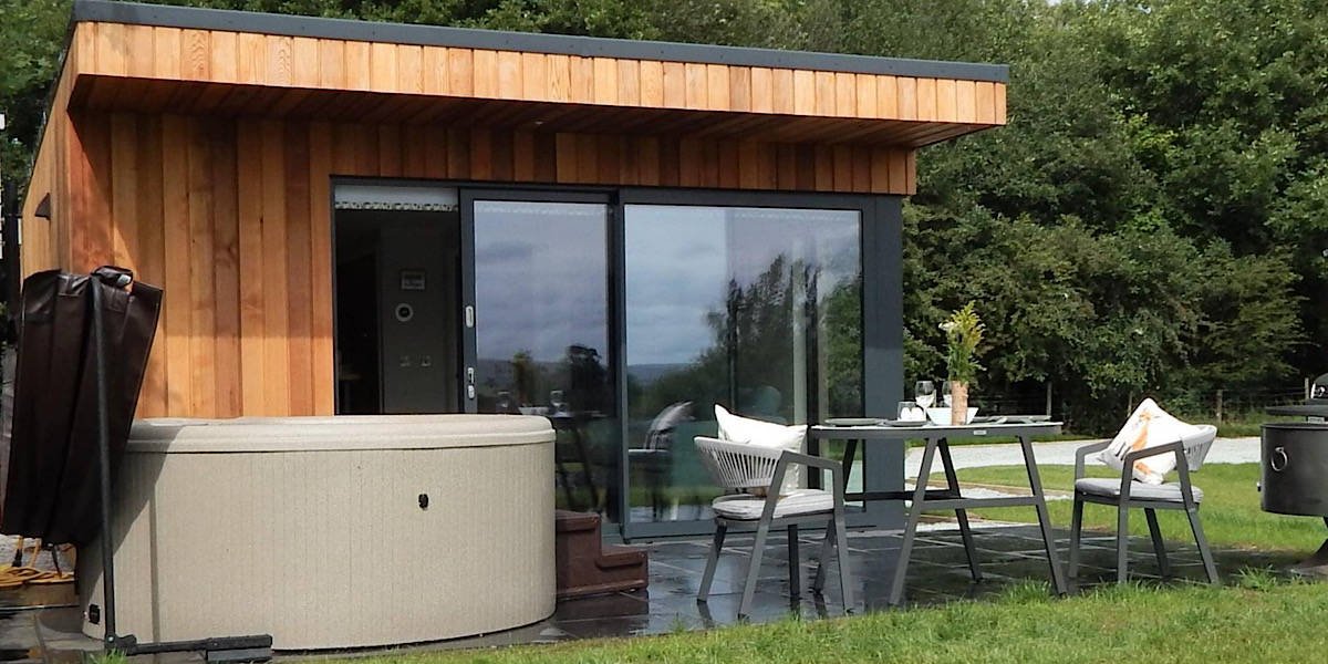 The 8 escape pods, named after local walks, are positioned at the top of the site with superb views and all day sunshine.