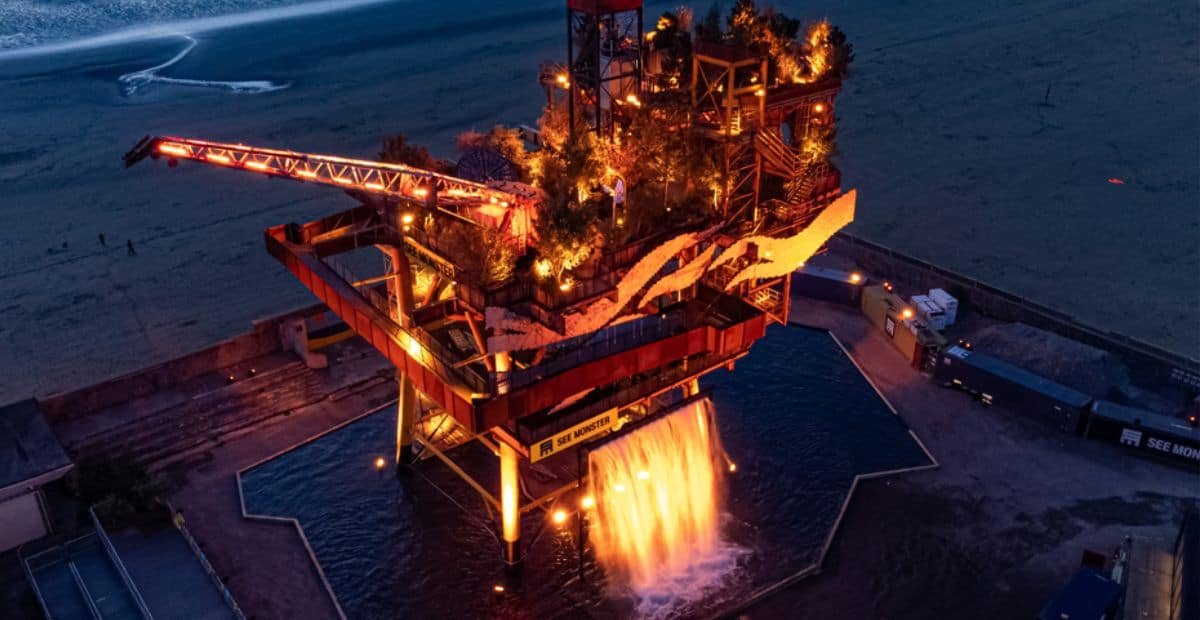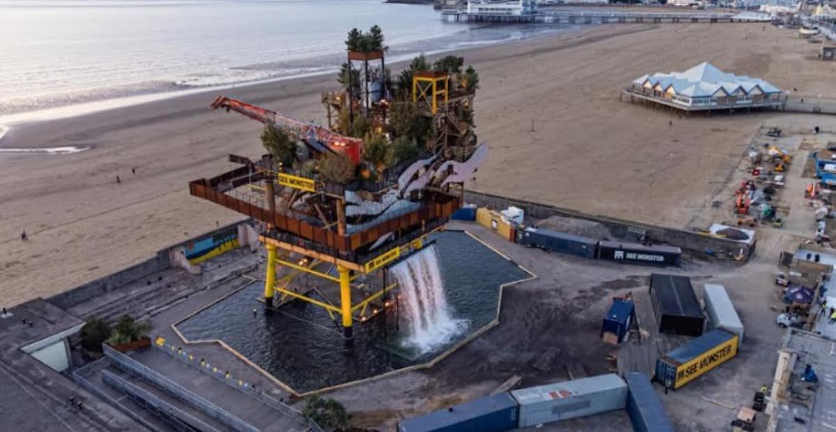 SEE MONSTER is a retired offshore platform from the North Sea, dragged to shore on a barge as large as a football pitch and transformed into one of the UK’s largest public art installations, and it’s causing some waves on the South West coast of England at the beach in Weston-Super-Mare.
