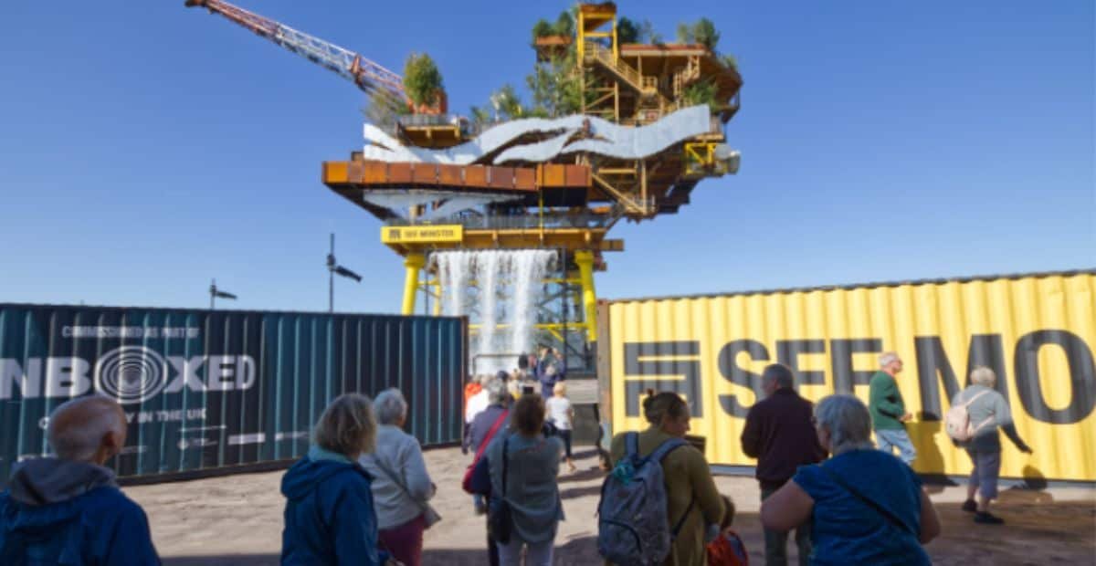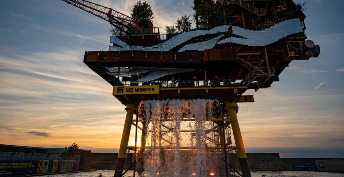 SEE MONSTER, part of UNBOXED: Creativity in the UK, is a decommissioned North Sea offshore platform transformed into one of the UK’s largest public art installations with four publicly accessible levels. Located at the iconic Tropicana on Weston-super-Mare’s seafront, this world-first transformation aims to inspire conversations about reuse, renewables, and the great British weather.