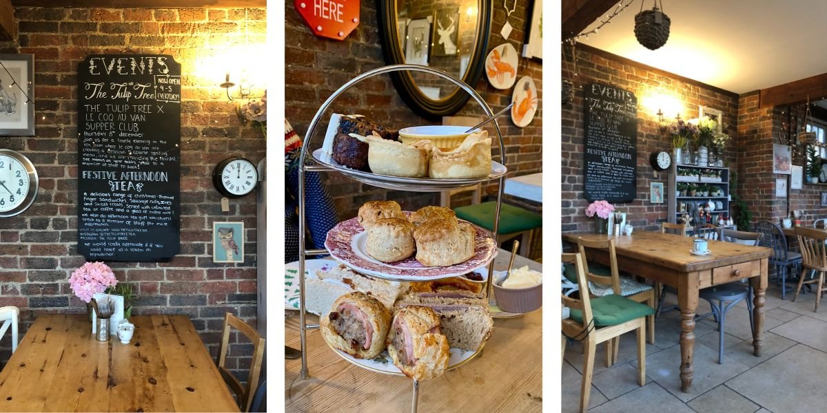 Earlier this month, we visited to try one of the seasonal Christmas Afternoon Teas and it’s safe to say we were very impressed. Upon arrival, we were welcomed by staff and shown to our table (perfectly placed close to the much-needed and cosy wood burner) in the main part of the cafe. A mixture of homely, wooden tables and a couple of comfy sofas, The Tulip Tree is full of characteristic features and pretty decor. They also have a lovely little garden terrace for sunny days.