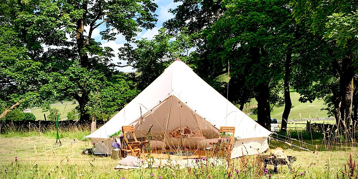 Sleeping under canvas will give you a sense of calm and tranquillity. This in the Yorkshire Dales will give you the feeling of being at peace, surrounded by nature, the lush green rolling hills and babbling brooks.