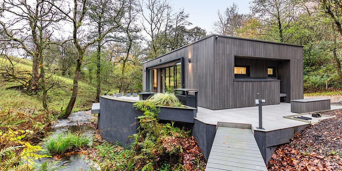 The Pump House Lodge is total luxury, with a sunken outdoor hot tub which is totally surrounded by nature.