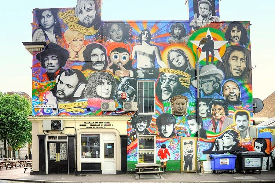 Brighton has a reputation not only for colourful characters but for an internationally renowned street art scene. You will find original street art dotted all around the city, such as the famous Prince Albert pub dedicated to musical legends.